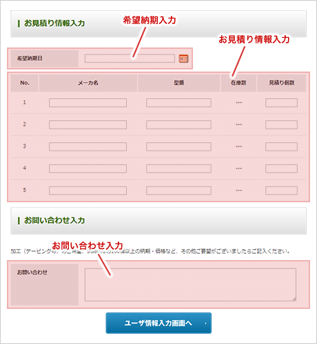図:お見積り情報入力