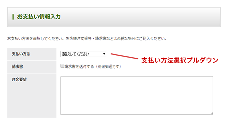 通常は、会員登録時に入力した支払い方法が選択済みになっています。この支払い方法を任意に変更することができます。 - 3. 請求書の有無を選択できます。